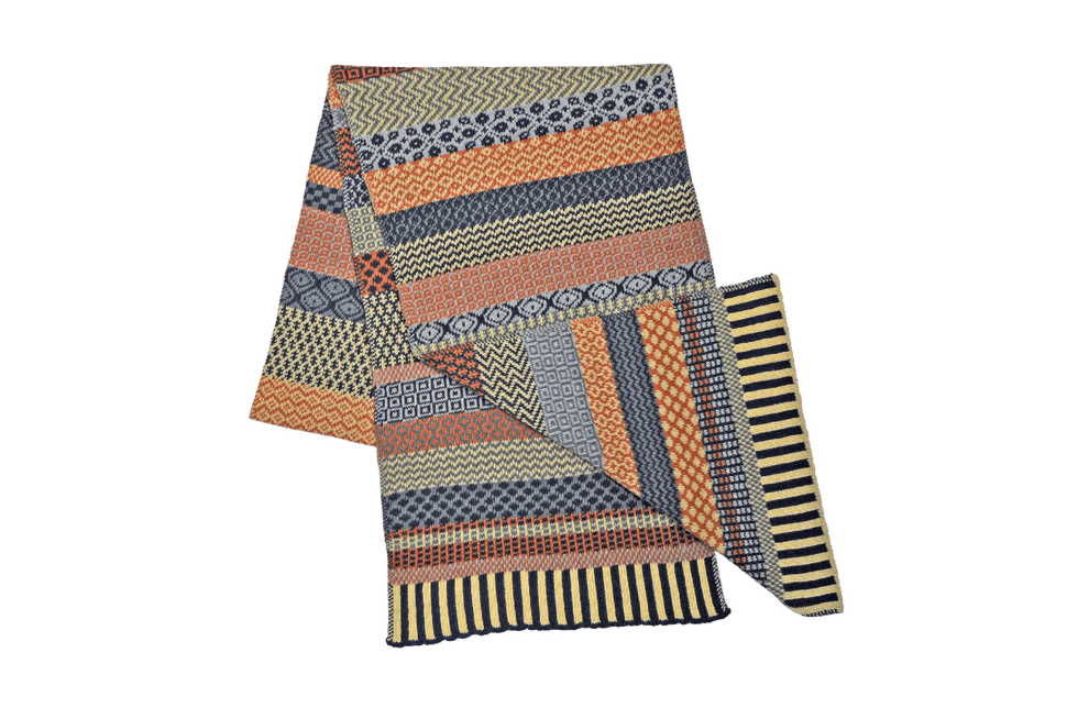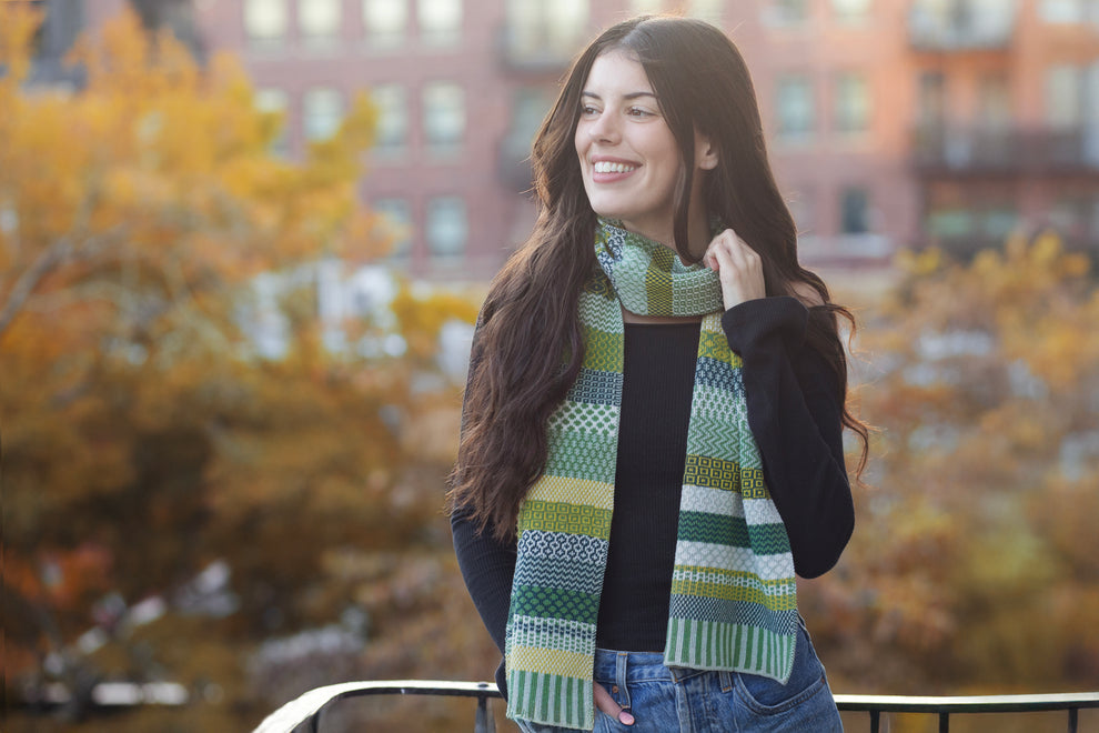 These super cozy scarves come in the same color patterns as our beautifully vibrant whimsical socks. Crafted from recycled materials and perfect for wrapping around cold necks on chilly afternoons! They are knit as a flat scarf about 66 inches long, and when laid flat they are 11 inches wide.